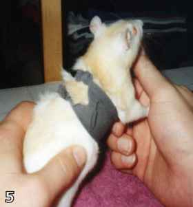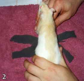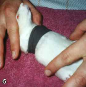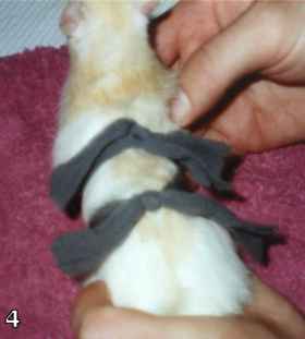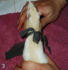 Das Bikinioberteil für Wunden, die eher im Brustbereich sitzen, funktioniert im Grunde genauso. Wichtig auch hier, dass man darauf achtet, dass der Verband nicht zu fest und nicht zu weit sitzt, und dass sich das Tier danach noch ungehindert bewegen kann.