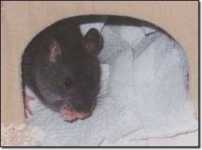 Etwa 3 Wochen nach der Idee uns Ratten zuzulegen war es soweit. An einem Samstag Nachmittag fuhren wir zu der Familie, bei der wir uns damals die Rattenbabys angesehen hatten. Die Kleinen waren immer noch frech und quirlig, aber auch recht scheu, wie ihre Mutter. Unerfahren wie wir nun mal waren, schenkten wir diesem Phänomen keine große Beachtung. Sofern wir eins der Babys erwischten, wurde es ausführlich von uns gestreichelt. Dabei fanden wir eine Ratte bemerkenswert, da sie scheinbar mit den Zähnen knirschte, als wir sie kraulten. Wie hielten das für ein gutes Zeichen und nahmen sie und Nikita mit. Schon auf der Heimfahrt wurden wir aber skeptisch. Das "Zähneklappern" nahm gar kein Ende und die Kleine zitterte ganz komisch. Na ja, wir dachten sie sei nervös von der Autofahrt und warteten erst mal ab. Daheim angekommen setzten wir die beiden in den komfortabel eingerichteten Käfig und beobachteten sie fasziniert, wie sie sofort alle Ecken erkundeten, Futter- und Wassernapf testeten und sich ein bisschen balgten.