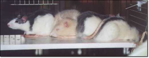 Naomi, Orange und Ally schien der Zuwachs nicht allzu sehr zu stören, doch direkt kuscheln wollten sie auch nicht. Die Gruppen hielten sich streng getrennt. Doch das gab sich nach kurzer Zeit, und nun kuscheln unsere Kleinen schon lange bunt gemischt. Jede der Mädels hat ihre eigene Persönlichkeit entwickelt. Milka ist die ängstlichste, sie traut sich immer als letzte auf den Boden, wenn es Auslauf gibt. Sie hat einen kleinen weißen Fleck auf der Stirn, und genau auf diesem Fleck sind die Haare etwas länger, so dass sie als Puschelchen in die Luft stehen. Noëlle ist etwas dominant und relativ revierbezogen, sie zwickt manchmal durch die Gitterstäbe, und mag es gar nicht, wenn man sie auf den Rücken dreht, und ihren Bauch wuschelt. Und Mira ist ein kleiner Frechdachs, sie entdeckt gern das Wohnzimmer, und ist eine der ersten, die am Gitter hängen.